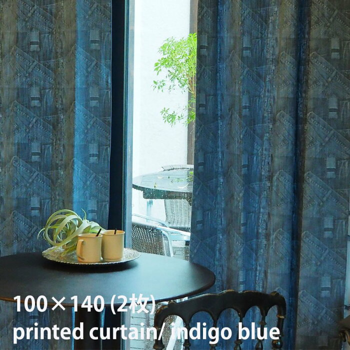 国産デニムカーテン/岡山井原製/井原デニム/井原デニム研究所/プリントカーテン/メーカー品番:IDC-P-B1400/巾200cm×高さ140cm両開き(100cm×140cm2枚組)/リバーシブル/ハトメスタイル/ブリーチ加工/青