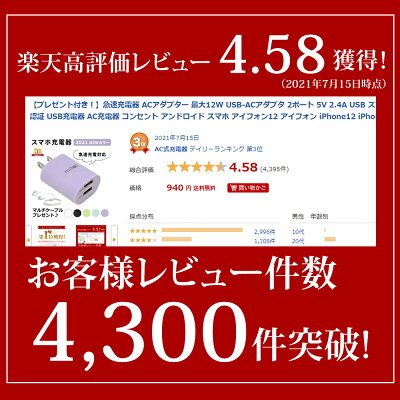 【プレゼント付き!】急速充電器 ACアダプター 最大12W USB-ACアダプタ 2ポート 5V 2.4A USB スマートIC 充電器 チャージャー PSE認証 USB充電器 AC充電器 コンセント アンドロイド スマホ アイフォン12 アイフォン iPhone12 iPhone android ER-UALY24