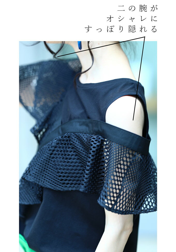 ◇◇【再入荷♪5/28 12時&20時】レース袖のアシンメトリートップス/アシメトップス