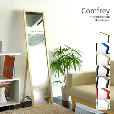 スタンドミラー 全身 ミラー スリム 全身鏡 鏡 姿見 シンプル 北欧 モダン 木製 おしゃれ 玄関 ドレッサー フレーム 木製スタンドミラー Confrey〔コンフリー〕 シルバー ブラック ブラウン ブルー レッド ホワイト ナチュラル
